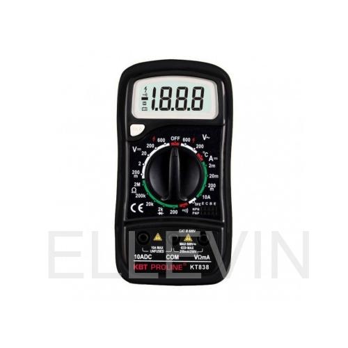 Цифровой мультиметр КВТ KT 838 PROLINE 79128 используется для измерения постоянного тока, постоянного и переменного напряжения, сопротивления и температуры. Для расширения функциональности устройство выполняет тест диодов и прозвонку.