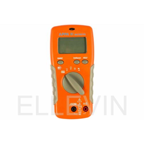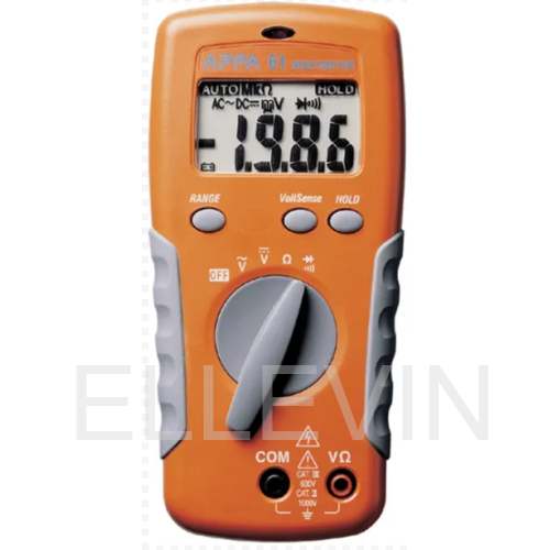 Прибор позволяет измерять переменное напряжение до 750 В, а постоянное - до 1000 В. В первом случае погрешность аппарата составляет 1,5%, во втором - 0,5% при шаге в 0,1 мВ. Измерения сопротивления APPA 61 проводит в пределах от 200 Ом до 20 МОм с точностью 0,7%. Прозвонка электроцепи производится в диапазоне до 270 Ом. P-N проводят с тестовым током 1,5 мА. Мультиметр APPA 61 измеряет частоту до 20 МГц и емкость до 2 мФ.
