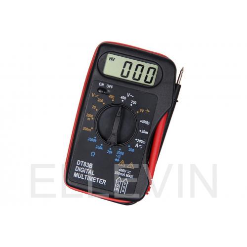 Цифровой мультиметр DT83B предназначен для измерения сетевого напряжения, силы тока, сопротивления, а так же проверки диодов и транзисторов.