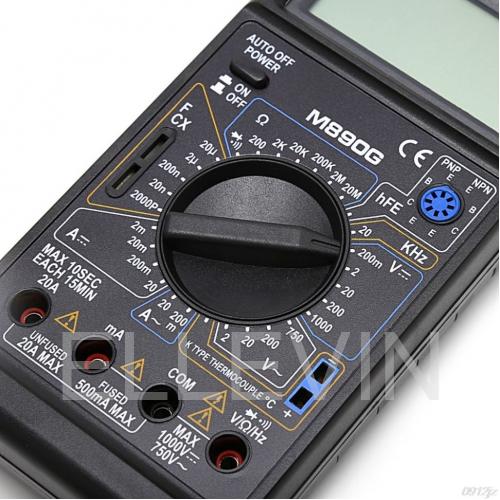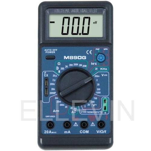 Мультиметр DT-890G оснащен индикатором для контроля состояния батареи, позволяет изменять спектр электрических параметров для проведения оперативных замеров. У него интегрированная система защиты от перегрузки и скачков напряжения. Модель имеет переключатель с множеством режимов. В том числе для измерения емкости, сопротивления, транзисторов, проверки диодов и так далее. Отличается высоким уровнем чувствительности, которая равняется 100 микроватт.