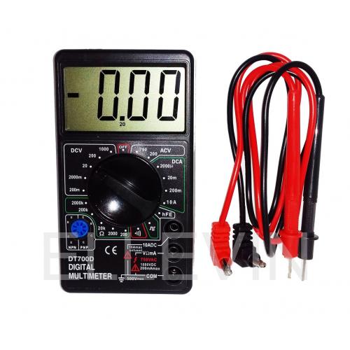 Цифровой мультиметр DT700D для измерения постоянного, переменного напряжения, постоянного тока, сопротивлений, проверки диодов и транзисторов.
