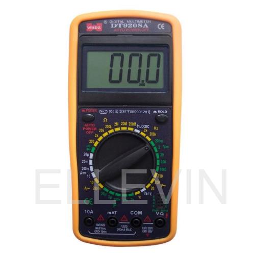 Мультиметр DT9208A предназначен для измерения тока, напряжения, сопротивления, параметров диодов и транзисторов, а также частоты и температуры. Прибор многофункционален, портативен, питается от химических источников, удобен при ремонте электрооборудования автомобиля, лабораторных измерений и т.д.