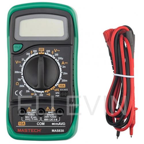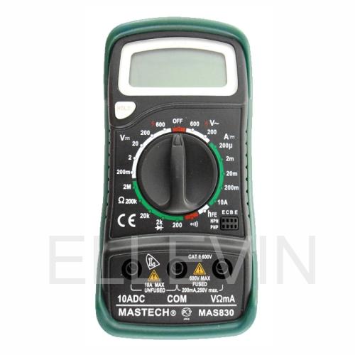 Мультиметр — электроизмерительный прибор который включает в себя несколько функций и набор измеряемых параметров. Все приборы серии MAS830 измеряют постоянное и переменное напряжение, постоянный ток и сопротивление в цепи. С помощью данного прибора можно проводить тестирование диодов и прозвонку целостности цепи.
