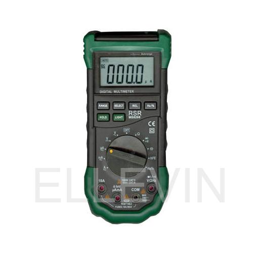 Цифровой автоматический мультиметр MASTECH MS8268 00-00000267 измеряют силу тока постоянного и переменного напряжения, величину постоянного и переменного напряжения, сопротивление, ёмкость конденсаторов, частоту сигнала и коэффициент усиления биполярных транзисторов.