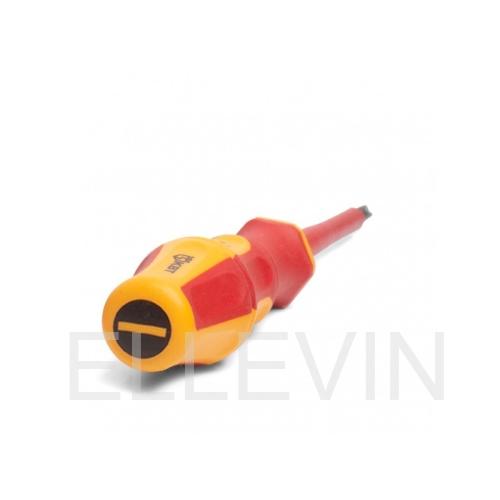 Назначение отверток КВТ 78614, защищенных по стандарту VDE, – это использование их для ремонта и обслуживания электрооборудования, в том числе под напряжением до 1000 В. Изоляция на стержне и рукоятке из двухкомпонентного мягкого пластика проходит заводские испытания напряжением в 10 кВ, что гарантирует надежную защиту от поражения током. Эргономичная рукоять делает работу удобной, исключает перекатывание инструмента на горизонтальной поверхности и позволяет прикладывать большое усилие при отворачивании крепежа.