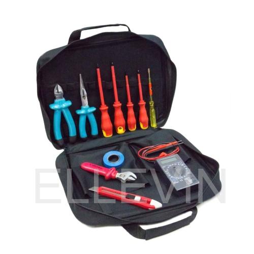 Набор электрика НЭ-К1 предназначен для проведения работ под напряжением до 1000В при строительстве и реконструкции зданий, связанные с монтажом электрических сетей и кабеля. Включает в себя 11 наиболее необходимых инструментов, в том числе отвертки, длинногубцы, кусачки, ключ разводной, мультиметр.