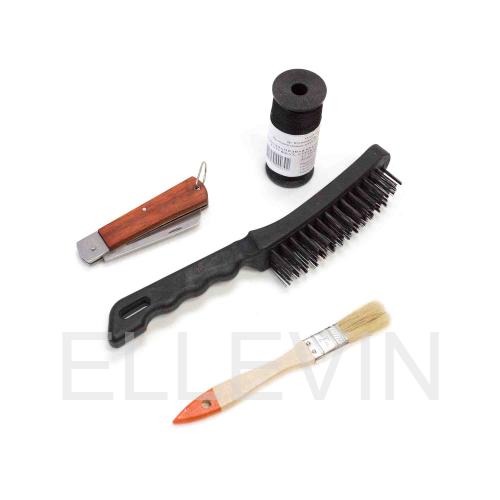 Набор включает в себя 38 предметов и состоит из изолированных плоскогубцев, кусачек и длинногубцев, отверток, пресс-клещей, кабельных ножей, ножовки по металлу, рожковых ключей, торцевых головок, газовой горелки и рукава высокого давления.