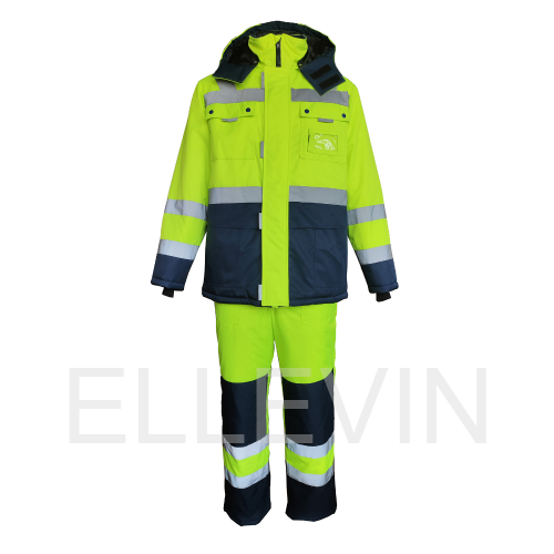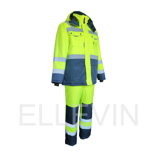 Костюм утепленный "НОРДИК" изготовлен в соответствии с ГОСТ и включает в себя два предмета: куртка / полукомбинезон. Центральная застежка изделия – молния с ветрозащитной планкой на липучку. На модели расположены накладные карманы с клапанами на кнопках, карман для бейджа, нижние накладные карманы и внутренний карман на подкладке. Для сохранения тепла на куртке предусмотрена ветрозащитная юбка на подкладке и утяжка по низу. Воротник-стойка имеет флисовую подкладку для дополнительного тепла. Костюм оснащен съемным капюшоном, который можно регулировать по объему лицевой части и использовать с каской. Трикотажные манжеты по низу рукавов регулируют посадку. Накладные карманы на передних половинках п/к обеспечивают удобный доступ к необходимым вещам. Для лучшего прилегания на изделии присутствует ткацкая резинка по линии талии. В области колен на задних половинках усилительные накладки. Для безопасной работы сотрудника в местах с плохим освещением на костюме «НОРДИК» предусмотрена световозвращающая лента в 2 ряда.