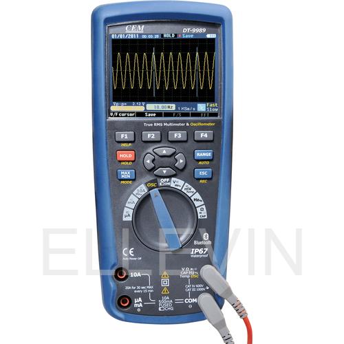 Профессиональный, промышленный цифровой мультиметр TRMS DT-9989 с функциями осциллографа и цветным ЖК-экраном TFT обладает высоким быстродействием, точностью, встроенными функциями регистратора данных и вывода графиков. Прибор оснащен Bluetooth (беспроводной системой передачи данных) с возможностью передавать данные на ПК и смартфон (Android) с помощью ПО Meterbox iMM Classic, а также памятью для записи информации. Благодаря двойному пластиковому водонепроницаемому корпусу (класс защиты IP67) мультиметр обеспечивает высокую безопасность работы.