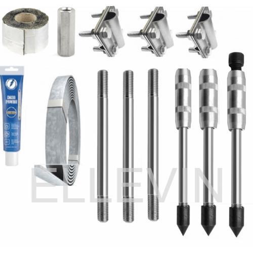 Заземляющие устройства изготовлены из оцинкованной стали марки ст.35 (или ст.20) с покрытием цинком по ГОСТ 9.301-86 / ГОСТ 9.307-2021. Минимальное рекомендуемое расстояние от фундамента - не менее 1 метра.