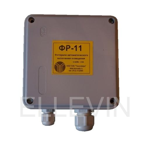 ФР-11 Цифровое фотореле с ночным режимом предназначено для управления освещением в зависимости от освещенности фотодатчика Принцип работы: Включение нагрузки происходит при снижении уровня освещенности датчика, после чего нагрузка остается включенной в течение установленного интервала времени «вечер». Затем нагрузка отключается на установленный интервал «ночь». По истечении интервала «ночь» нагрузка включается и остается включенной до увеличения освещенности до установленного значения. Одна контактная группы ("сухой" контакт) для коммутации нагрузки -10А. Напряжение питания 220в.