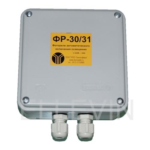 Электронное фотореле ФР-30/31 (сумеречный выключатель) предназначено для автоматического включения и отключения освещения. Смонтировано в герметичном корпусе. Фотореле ФР-30/31 имеет замыкающий контакт с током коммутации до 30 ампер. Датчик освещенности в выносном исполнении. Имеет заданные установки задержки включения/выключения 0, 30c, 1мин, 3мин, 10мин. Можно выбрать соответствующий режим нажатием на кнопку. При нулевой задержке устанавливается режим 1, а при задержке 10мин - режим 4. Одна контактная группы ("сухой" контакт) для коммутации нагрузки -30А.
