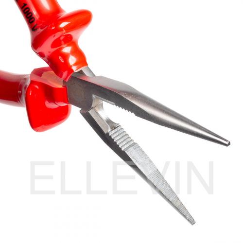 Для работы под напряжением до 1000 В Материал рукояток: двухслойная диэлектрическая пластизоль Захватные губки с зубцами и режущими кромками для среднетвердой и твердой проволоки Режущие кромки дополнительно закалены токами высокой частоты. HRC 62 Материал рабочей части: хром-ванадиевая сталь Обработка поверхности: матовое никелирование