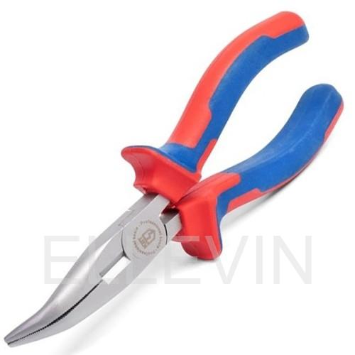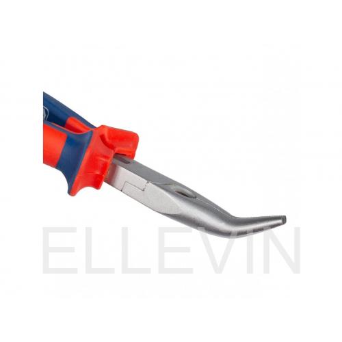 Новые длинногубцы КВТ 77424 с изогнутыми губками предназначены для проведения монтажных и слесарных работ в труднодоступных местах. Ширина захватных губок всего 1,8 мм, а рабочая поверхность снабжена специальными насечками для надежной фиксации. Прочность инструменту придают добавки хрома и ванадия в легированной стали, после чего все длинногубцы подвергают индукционной закалке. С помощью режущей части можно легко перекусывать мягкую проволоку до 1,5 мм толщиной. Рукоятки выполнены из двухкомпонентного материала с эластичными вставками и противоскользящими упорами.