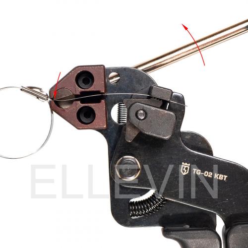 Стяжка обрезается с помощью специального рычага, вращающего нож.