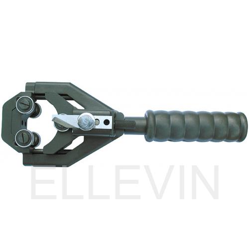 Конструкция инструмента КВТ КСП-40 предусматривает наличие 6 роликов, которые точно фиксируют и обкатывают кабель. Необходимый диаметр настраивается осевым вращением рукояти, которая двигает каретку со встроенным ножом. Плавно регулируется и глубина реза, что делает его максимально чистым и аккуратным.