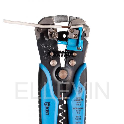 Стриппер автоматический КВТ - многозадачный ручной инструмент, используемый при проведении электромонтажных работ: удалении изоляции с проводов, их резки и опрессовки наконечников различных видов (в том числе изолированных).