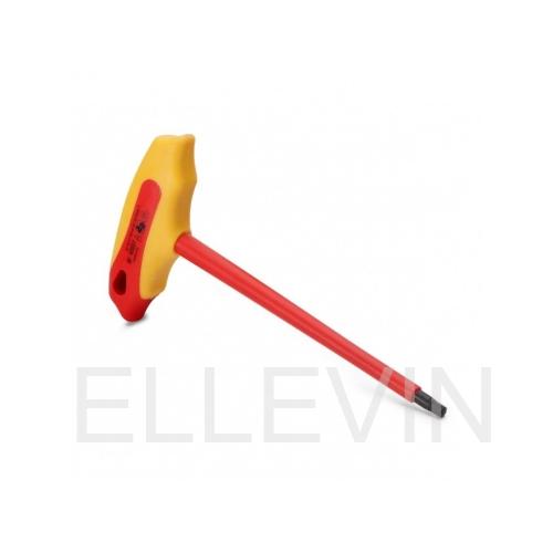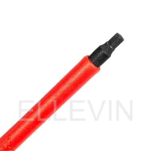 Для работы под напряжением до 1000 В Материал стержня: сталь S2 Твердость стрежня: HRC 58...62 Обработка поверхности: воронение Двухкомпонентные рукоятки с прорезиненным нескользящим покрытием Маркировка типоразмера и VDE-сертификации по IEC 60900 — на каждом ключе
