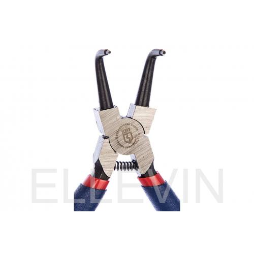 Кольцесъемник КВТ 77434 серии КВИ отличается от базовой модификации загнутыми на 90 градусов концами, что дает возможность работать в ограниченном пространстве. Кольцесъемнику КВИ 160 важна высокая жесткость рабочих кромок и отсутствие остаточно деформации после многочисленных циклов сжатия, поэтому в качестве материала губок используется инструментальная сталь марки У55. Это гарантирует продолжительный срок службы и дает возможность работать со стопорными кольцами любого типа. Для надежного захвата и удержания инструмента в руке были разработаны оригинальные двухкомпонентные ручки из мягкого пластика.