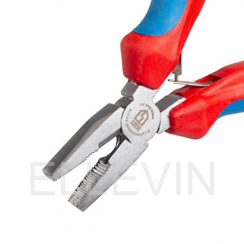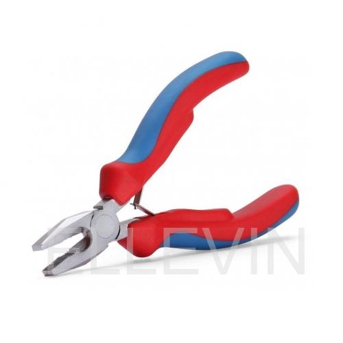 Мини-пассатижи(78240) удобно лежат в руке за счет объемных двухкомпонентных рукояток из нескользящего пластика. Шарнирный механизм снабжен возвратной пружиной, которая помогает раскрывать губки и облегчает частые манипуляции с инструментом.
