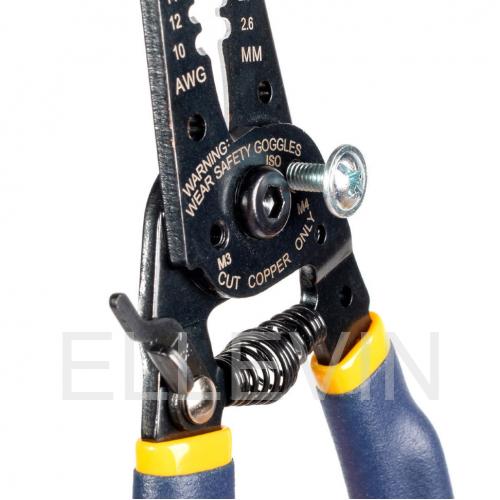 профессиональный ручной инструмент КВТ, предназначенный для удаления изоляциис проводов, их разрезания, формирования петель, а также резки винтов М3 и М4. Кроме того, концы губок оснащены насечкой и позволяют использовать КВТ WS-01C как пассатижи.