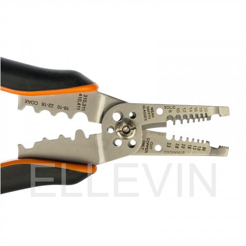 профессиональный ручной инструмент КВТ, предназначенный для удаления изоляции с проводов, их разрезания, формирования петель, опрессовки наконечников и коаксиальных соединителей, а также резки винтов М2,5–М5. Кроме того, концы губок оснащены насечкой и позволяют использовать КВТ WS-01D как пассатижи. Отличается от модели WS-01D ещё большей мощностью и универсальностью.
