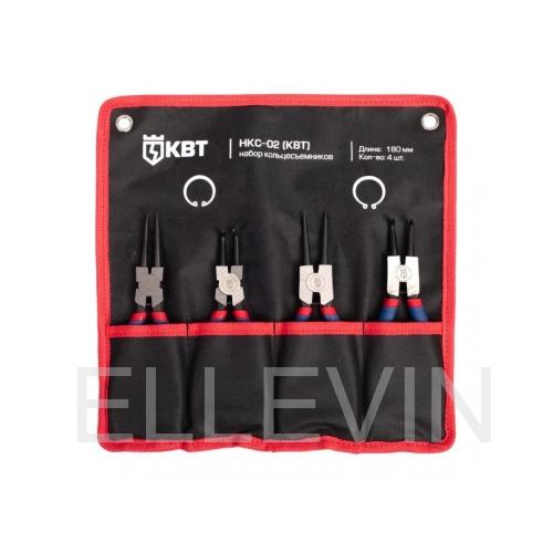 В состав набора НКС-02 (77443) входит инструмент для снятия как внутренних, так и наружных колец различного типа. Каждый съемник размещается в отдельном отсеке матерчатой сумки, которая имеет липучку для крепления и специальные отверстия для размещения на евростендах. Набор представлен самыми большими кольцесъемниками от КВТ серии МАСТЕР, для остальных колец предназначены съемники длиной 140 мм и набор НКС-01.