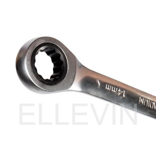 Трещоточный механизм накидной части ключа, позволяет комфортно работать в местах с ограниченным пространством.