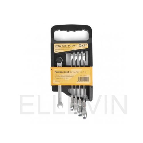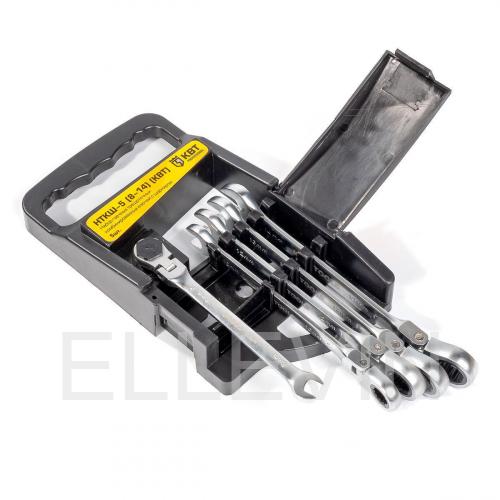 НТКШ-5, Набор гаечных комбинированных трещоточных ключей с шарниром (8-14), КВТ 79201