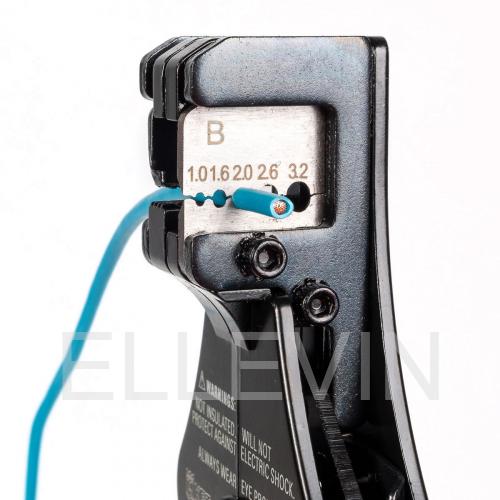 Зажим и разрезание оболочки осуществляется за счет одной рабочей операции. В защищенный оксидированием корпус встроен прозрачный ограничитель длины. Пружина возвращает стриппер КВТ WS-03A в исходное положение, а двухкомпонентные рукоятки обеспечивают уверенный хват.