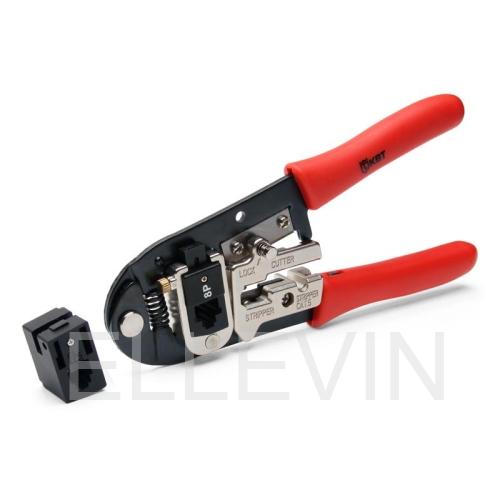 Пресс-клещи обжимные универсальные КВТ JT-01A - профессиональный ручной инструмент, предназначенный для опрессовки RJ-разъемов, перерезания проводов, в также удаления изоляции с плоских телефонных и круглых проводников (UTP, STP).