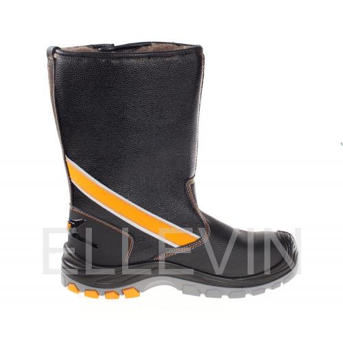 Верхняя часть обуви выполнена из термоустойчивой и водоотталкивающей кожи (юфти) толщиной от 1,8 до 2,0 мм. Подошва – двухслойная, устойчивая к воздействию нефти, нефтепродуктов, щелочей концентрации до 20%, повышенных температур. Голенище выполнено из искусственной кожи. Верхний слой из полиуретана обладает амортизирующими свойствами, гасит ударные нагрузки, а также придает обуви легкость, комфортность и повышенные теплозащитные свойства. Ходовой слой изготовлен из износостойкой, термостойкой (+300°С / 60 с), морозостойкой резины на основе нитрильного каучука с улучшенным сопротивлением скольжению, стойкостью к деформациям, истиранию. Носочная часть имеет дополнительную защиту в виде полиуретановой накладки, предотвращающей механические повреждения обуви и препятствующей проникновению холода. Для защиты от ударов в носочной части стопы в обуви применяется композитный подносок (Мун 200), имеющий конфигурацию, препятствующую надавливанию верхнего края на стопу, и оборудованный прокладкой из полиуретана. ПОДНОСОК: Укрепленный, поликарбонатный ПОДОШВА: Литьевой метод крепления, двухслойная, полиуретан /резина на основе натурального каучука (ПУ-Резина).