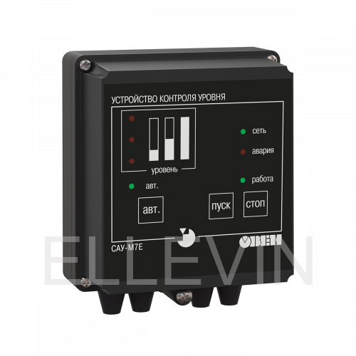 Прибор САУ-М7Е обеспечивает контроль уровня жидких или сыпучих материалов в резервуаре. Может управлять заполнением, осушением или поддержанием уровня в отопительных котлах, водонапорных башнях, зернохранилищах и т.п.