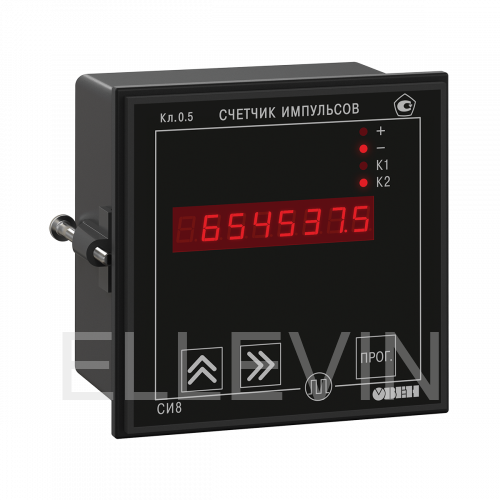 Микропроцессорный счетчик импульсов СИ8. Используется для подсчета количества продукции на транспортере, длины наматываемого кабеля или экструзионной пленки, сортировки продукции, отсчета партий продукции, суммарного количества изделий и т.п. Встроенный в СИ8 таймер позволяет использовать прибор в качестве счетчика наработки, расходомера или для определения скорости вращения вала.