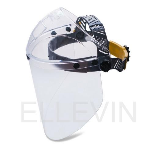 Прозрачный козырек из ударопрочного и термостойкого материала STRONG. Удлиненный экран из ударопрочного и термостойкого поликарбоната 2 мм (220х385мм), устойчив к истиранию и царапинам. Наголовное крепление RAPID с мягким обтюратором.