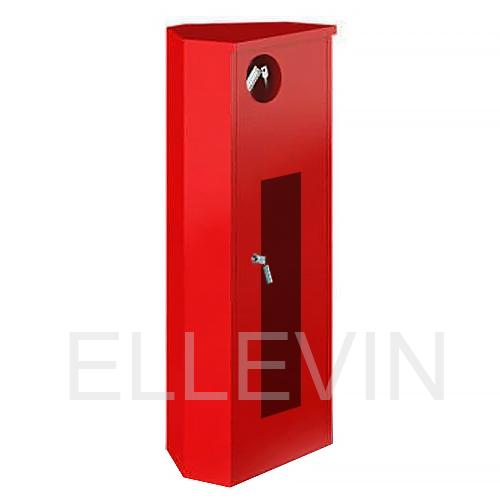Шкаф для размещения огнетушителя массой 6-12 кг., установочные габариты: ширина 300 мм, высота 700 мм, глубина 240 мм; углового типа, С ОСТЕКЛЕННОЙ ДВЕРЦЕЙ, красного или белого цвета (литера К или Б в названии шкафа); оснащён почтовым замком и гнездом для запасного ключа.