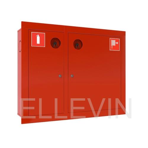 Необходим для хранения первичных средств пожаротушения. В малой секции изделия размещается огнетушитель, а в большой - пожарный кран. Закрытое исполнение шкафа делает возможным его установку на любых объектах, т.к. в его конструкции нет стекла, которое можно случайно разбить и порезаться. В связи с этим данная модель шкафа пользуется спросом на объектах с массовым пребыванием людей: детские сады, школы, больницы, клубы и др. Габариты секции для огнетушителей 300х650х230.