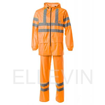Костюм «ТАЙФУН» изготовлен в соответствии с ГОСТ и включает в себя два предмета: куртка / брюки. Он обеспечивает максимальную защиту от дождя, ветра, снега и загрязнений во время работы или активного отдыха, а также обеспечивает максимальную безопасность в условиях плохой видимости. Куртка прямого силуэта оснащена притачным капюшоном и отложным воротником. Пояс на резинке обеспечивает комфортную посадку. Центральная застежка на молнию скрыта за ветрозащитной планкой на кнопках. На куртке расположены два нижних кармана с влагозащитными клапанами для удобного хранения вещей. На капюшоне шнур с фиксаторами для более плотного прилегания. Рукава реглан с внутренними манжетами на резинке обеспечивают защиту от холода. Брюки прямого силуэта с эластичной тесьмой в притачном поясе и регулировкой по поясу шнуром с фиксаторами. Все швы на куртке и брюках проклеены специальной лентой, обеспечивающей 100% герметичность швов и защиту от «протечек». Для безопасной работы сотрудника в местах с плохим освещением на костюме «ТАЙФУН» с СОП предусмотрена световозвращающая полоса шириной 50 мм. Предполагаемая сфера применения: дорожные и коммунальные службы, городское хозяйство, транспорт, работа на открытом воздухе в условиях плохой видимости.