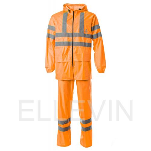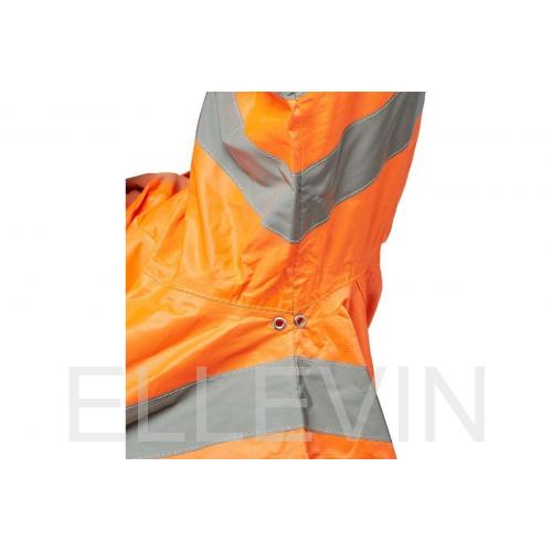 Костюм «ТАЙФУН» изготовлен в соответствии с ГОСТ и включает в себя два предмета: куртка / брюки. Он обеспечивает максимальную защиту от дождя, ветра, снега и загрязнений во время работы или активного отдыха, а также обеспечивает максимальную безопасность в условиях плохой видимости. Куртка прямого силуэта оснащена притачным капюшоном и отложным воротником. Пояс на резинке обеспечивает комфортную посадку. Центральная застежка на молнию скрыта за ветрозащитной планкой на кнопках. На куртке расположены два нижних кармана с влагозащитными клапанами для удобного хранения вещей. На капюшоне шнур с фиксаторами для более плотного прилегания. Рукава реглан с внутренними манжетами на резинке обеспечивают защиту от холода. Брюки прямого силуэта с эластичной тесьмой в притачном поясе и регулировкой по поясу шнуром с фиксаторами. Все швы на куртке и брюках проклеены специальной лентой, обеспечивающей 100% герметичность швов и защиту от «протечек». Для безопасной работы сотрудника в местах с плохим освещением на костюме «ТАЙФУН» с СОП предусмотрена световозвращающая полоса шириной 50 мм. Предполагаемая сфера применения: дорожные и коммунальные службы, городское хозяйство, транспорт, работа на открытом воздухе в условиях плохой видимости.