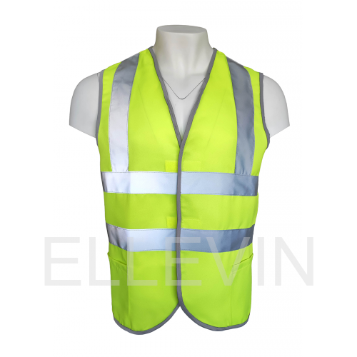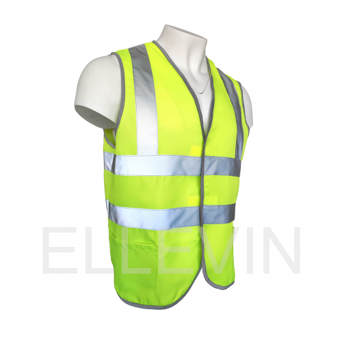 Жилет изготовлен в соответствии с ГОСТ. Изделие состоит из трикотажного полотна (100% ПЭ, пл. 120 гр./м², ВО отделка). На модели расположены накладные карманы. Для безопасной работы сотрудника в местах с плохим освещением на жилете сигнальном- 4 СОП «СПРУТ» предусмотрена светоотражающая лента (КД-380) и 4 СВП шириной 50 мм (КД-380).