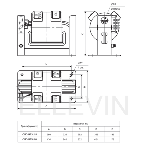 Cиловой однофазный трансформатор типа ОЛС-НТЗ мощностью 2,5 кВА, класса напряжения изоляции 6 кВ с переключением ответвлений обмоток без возбуждения (ПБВ). Климатическое исполнение «У» или «Т» категория размещения 4 по ГОСТ 15150. Степень защиты трансформаторов IP00. Система охлаждения трансформаторов – естественная циркуляция воздуха
