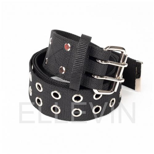 Прочная металлическая пряжка с двумя язычками и двойной ряд отверстий с металлической окантовкой