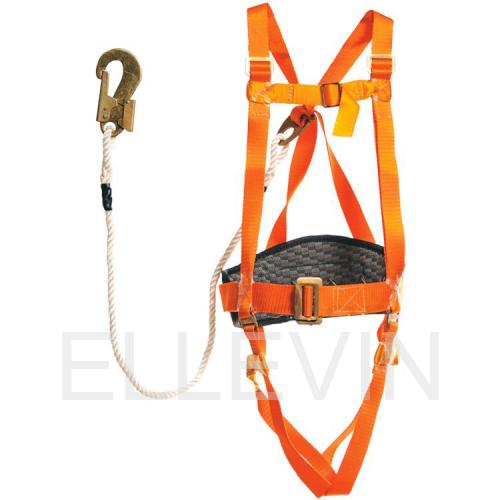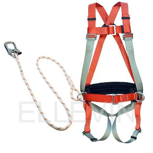 Пояс предохранительный ПП-2ВЖ включает в себя ремень с пряжкой (позволяет подгонять пояс по фигуре человека), подкладку под ремень (кушак), наплечные и набедренными лямки, элементы крепления – два металлические D-кольца на ремне привязи и одно на спине, строп из полиамидного каната с монтажным карабином (4 типа карабинов), бирку, выполненную в соответствии с ГОСТ Р ЕН 365, паспорт-инструкцию с отметкой ОТК и гарантией производителя (закреплен под биркой на кушаке).
