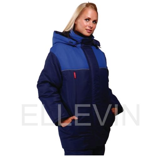 Куртка удлиненная, с рельефами на полочках. Центральная застежка на молнию, закрытую ветрозащитным клапаном на «липучках». Воротник - стойка, внутри выполнен из флиса. Боковые карманы - внутренние, на молнии. Рукава -втачные, внутри имеют трикотажные напульсники. По кокеткам спинки и полочек втачан светоотражающий кант. Ширина по линии талии регулируется резинкой. Утепленный капюшон пристегивается при помощи молнии и отделан по лицевому вырезу искусственным мехом.
