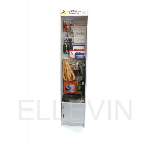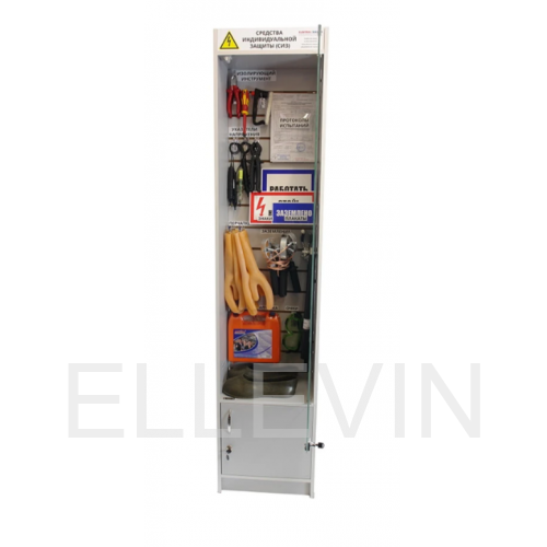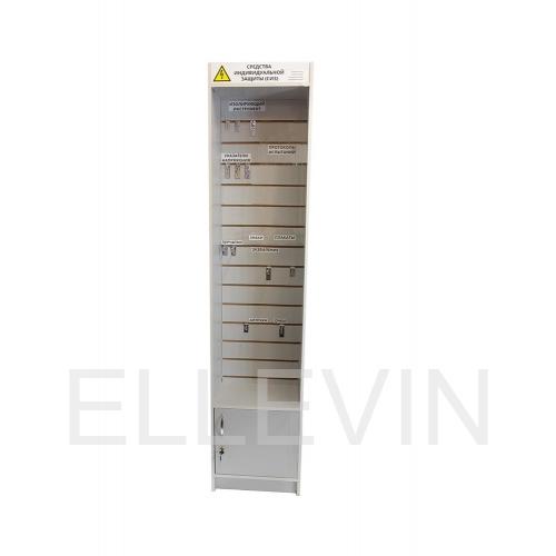 Стенд для хранения СИЗ, предназначен для создания условий хранения средств индивидуальной защиты, применяемых в электроустановках. Стенд защищает СИЗ от механических повреждений. Стенд располагается у входа в помещение и вблизи щита управления.