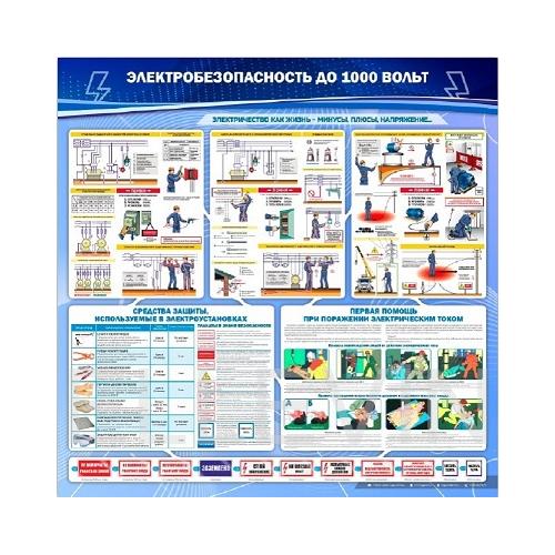 Стенд «Электробезопасность до 1000 вольт» содержит полную информацию об опасностях однофазных и двухфазных прикосновений, научит правильно переключать и заземлять электроустановки, напомнит о 3-х основных правилах перед началом работ. Приведен краткий перечень необходимых средств защиты – внешний вид, сроки эксплуатации и нормы испытаний, а также все необходимые знаки, используемые при работе с электрооборудованием. Стенд содержит информацию о первой помощи при поражении электрическим током – правила освобождения человека от действия тока и правила проведения искусственного дыхания и наружного массажа сердца