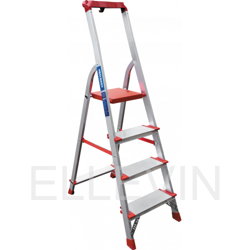 • Дополнительная опорная ступень на заднем каркасе. Стабилизирует стремянку.