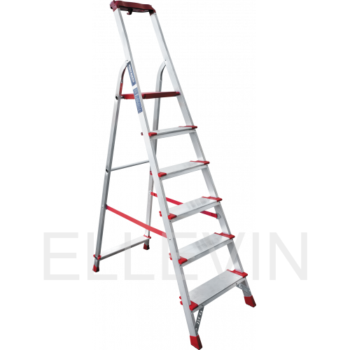 • Дополнительная опорная ступень на заднем каркасе. Стабилизирует стремянку.