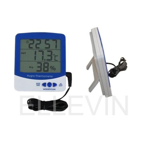Комнатно-уличный термогигрометр с большим дисплеем Уличный диапазон температуры от -50°C до + 70°C Комнатный диапазон температуры от -10°C до + 50°C Комнатный диапазон влажности от 20% до 99% Дополнительные функции - часы, будильник Память минимальных и максимальных значений температуры и влажности