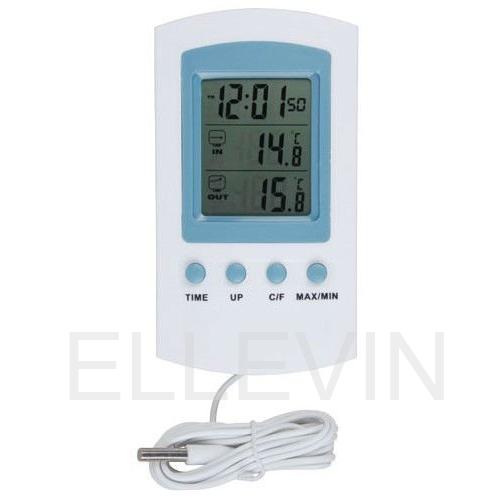Комнатно-уличный термометр с большим 3-х строчным дисплеем. Уличный диапазон температуры от -20°C до + 50°C Комнатный диапазон температуры от -20°C до + 50°C Дополнительные функции - часы, дата, секундомер. Память минимальных и максимальных значений температуры Переключатель 12/24 часа.